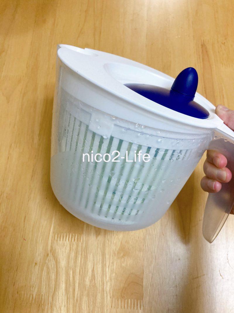 これまで私もザルとボウルを組み合わせて、シャカシャカしながら水切りをしていたんですが、手軽な反面どうしても水分が残りがちでした。